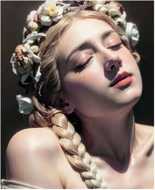 Từ bức tượng cô gái và đàn hạc, AI đã phục dựng thành một người phụ nữ vô cùng quyến rũ.