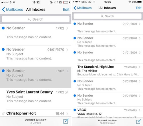 Những bức thư này không đề người gửi, chủ đề, trong khi nội dung trống. Tuy nhiên, đây chỉ là trục trặc nhỏ trên iOS chứ không phải lỗi quá nghiêm trọng giống như việc chỉnh ngày giờ iPhone về mốc 1/1/1970, khiến máy thành cục gạch.
