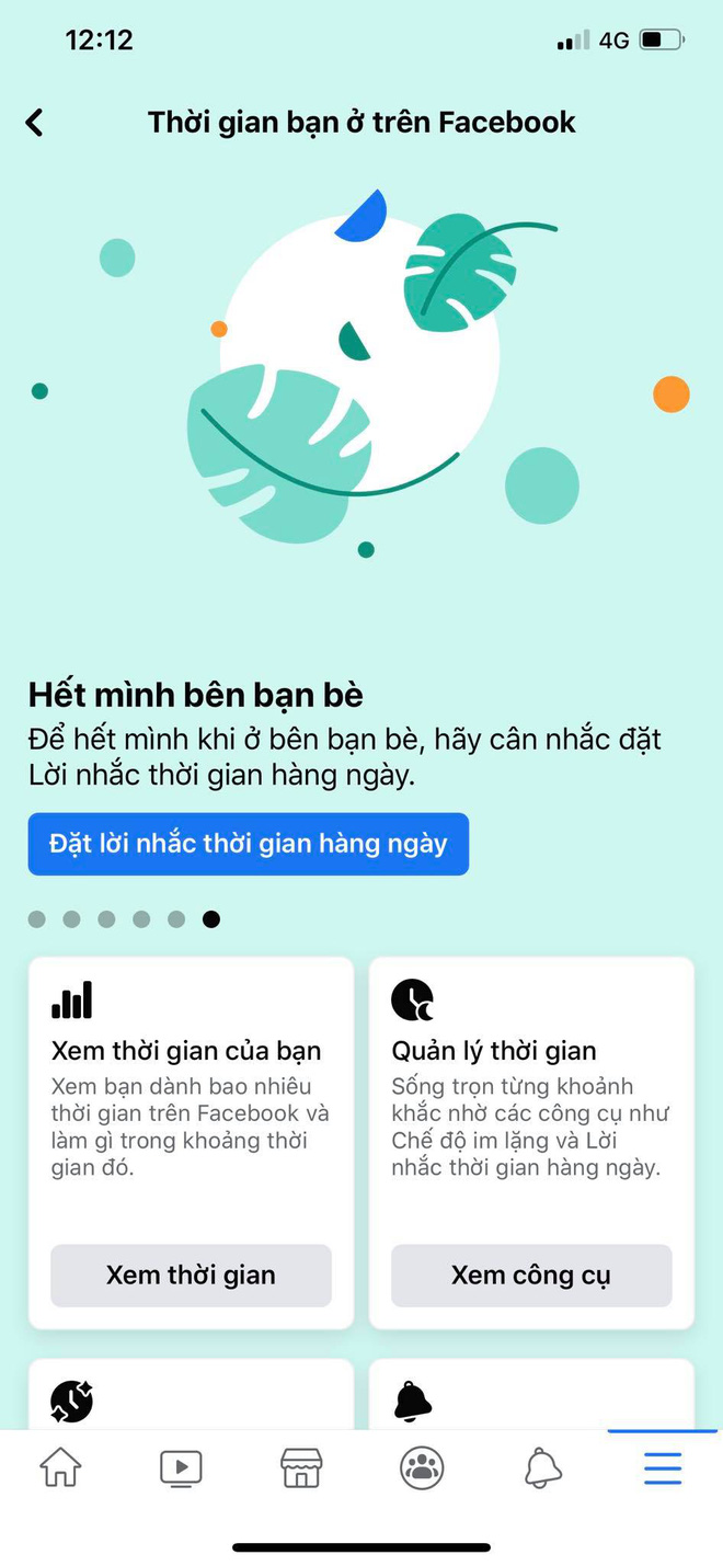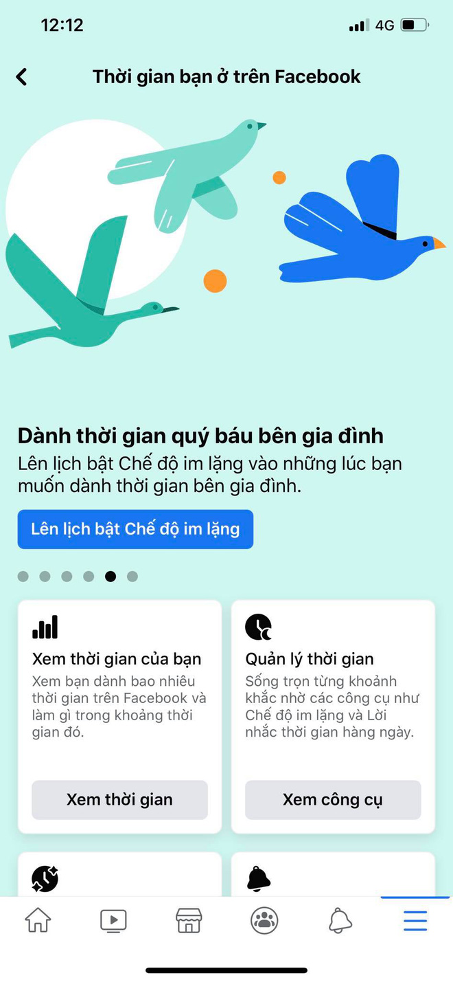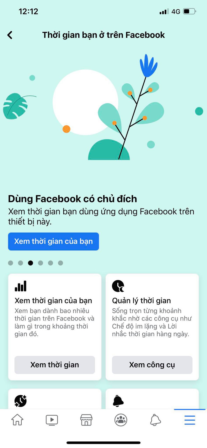 - Dùng Facebook có chủ đích: Xem thời gian bạn dùng ứng dụng Facebook trên thiết bị này.