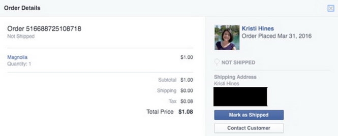 Thông tin đơn đặt hàng chủ nhân/doanh nghiệp nhận được khi có người đặt mua qua Facebok Shop trên Trang (Pages) của mình - Ảnh: socialmediaexaminer.com |
