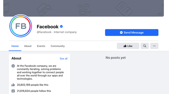 Trớ trêu là ngay chính fanpage của Facebook cũng bị ảnh hưởng bởi lệnh cấm này, khi nó cũng không thể chia sẻ thông tin về Facebook trên chính nền tảng của mình.