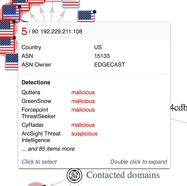 Đầu tiên về kết nối Internet, khi được khởi chạy, mã độc này sẽ tạo kết nối tới một số máy chủ tại Mỹ. Trong đó, có một số máy chủ đã nằm trong danh sách đen của các dịch vụ an ninh mạng. Đương nhiên, việc những dữ liệu nào của Độ Mixi được gửi tới các máy chủ đó sẽ cần thời gian phân tích sâu hơn.