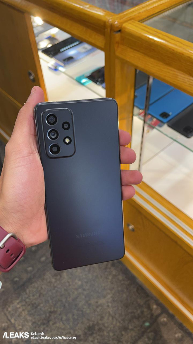 Một vài hình ảnh trên tay Galaxy A52 cũng xác nhận thiết kế được rò rỉ trước đó. Cụ thể, máy sẽ có mặt lưng nhám mờ (nhiều khả năng là chất liệu nhựa), kèm theo đó là cụm camera được thiết kế mới với 4 ống kính và 1 đèn flash LED đặt trong một mô-đun hình chữ nhật. Nhìn từ ảnh thì có vẻ như cụm camera này sẽ hơi lồi hơn so với mặt lưng.