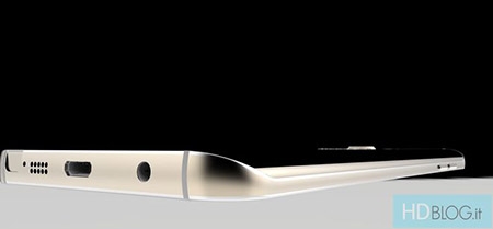 Cạnh dưới của máy có cổng âm thanh 3,5 mm, loa ngoài được làm các lỗ tỉ mỉ và cổng sạc. Nguồn tin nói rằng Galaxy Note 5 dùng chuẩn USB Type C, tuy nhiên, trong ảnh dựng này máy vẫn là microUSB. |