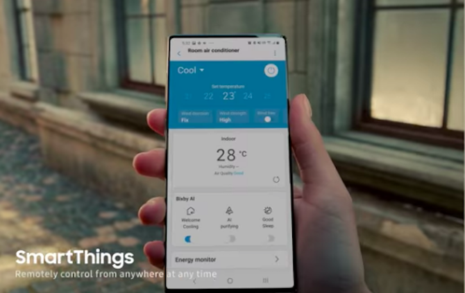 Một số người phát hiện hình ảnh điện thoại lạ trong quảng cáo về đồ gia dụng của Samsung trên YouTube tuần này. Smartphone có bốn viền đều rất mỏng, không có lỗ đen trong màn hình để chứa camera như thường thấy trên điện thoại của hãng Hàn Quốc. Theo SamMobile, hình ảnh này có thể không phải là Galaxy Note20, nhưng ngầm cho thấy Note20 sẽ tích hợp camera ẩn dưới màn hình.