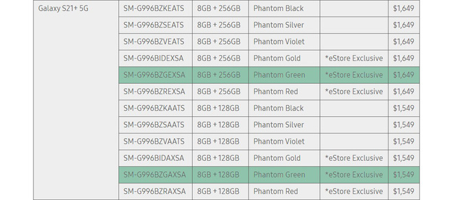 Hiện tại, vẫn chưa có cách nào để đặt hàng trước Galaxy S21+ phiên bản Phantom Green. Đây là màu thứ ba được bán độc quyền trên cửa hàng trực tuyến của Samsung, bên cạnh hai tùy chọn màu sắc khác là Phantom Gold và Phantom Red.