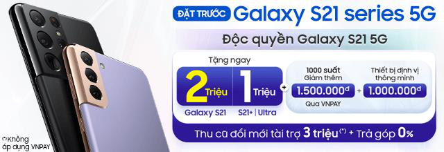 Galaxy S21 series đang được đặt hàng từ nay đến hết 23/1 tại Thế Giới Di Động với bộ quà lên đến 8,5 triệu đồng. Trong đó, khách hàng đặt trước Samsung Galaxy S21 phiên bản độc quyền tại Thế Giới Di Động sẽ nhận được ưu đãi 2 triệu đồng; ưu đãi 1 triệu đồng với phiên bản Galaxy S21+ và Galaxy S21 Ultra.