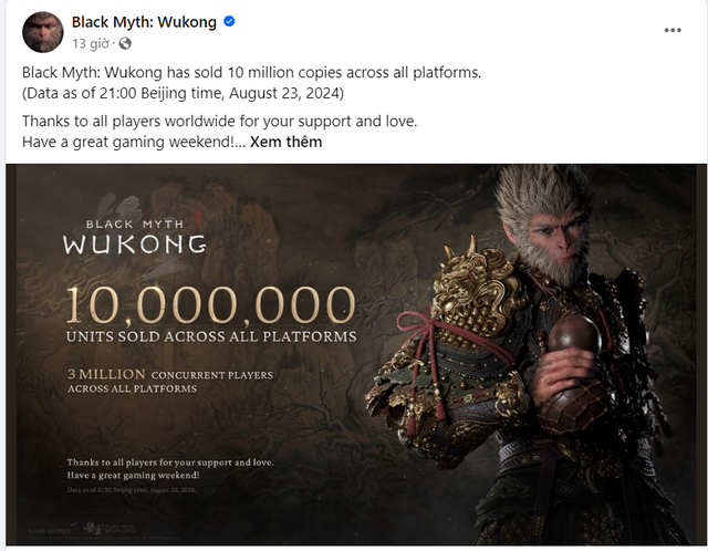 Thành tích của Black Myth: Wukong sánh ngang với "The Legend of Zelda: Tears of the Kingdom", tựa game hồi tháng 5-2023 đã bán được hơn 10 triệu bản trên toàn thế giới cũng trong 3 ngày kể từ khi ra mắt.
