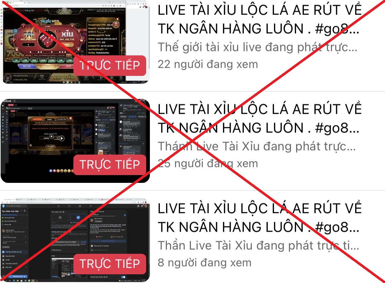 Tuy nhiên, ngược lại trên Facebook các nội dung liên quan đến game cờ bạc, hay quảng cáo về thể loại này lại đang ngập tràn với hình thức đa dạng. Chỉ cần gõ "Tài Xỉu" trên ô tìm kiếm, người dùng có thể bắt gặp rất nhiều hình thức quảng cáo cho thể loại cờ bạc này, từ livestream trực tiếp, đến chia sẻ các bí kíp để chơi, hay xuất hiện hàng loạt fanpage cũng như các nhóm trao đổi… Tất cả được tạo ra để thu hút người chơi và hoạt động công khai trên mạng xã hội này.