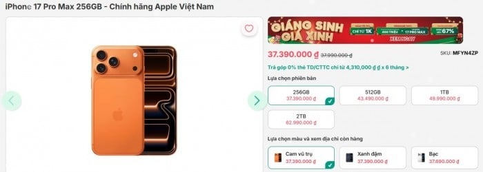 - iPhone 17 Pro Max - 256GB: 37.390.000 đồng