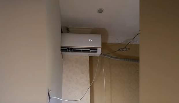 Đoạn clip quay lại cảnh gia đình Trung Quốc lắp đặt 1 chiếc điều hòa dùng chung cho 2 phòng ngủ để tiết kiệm tiền điện (Nguồn: SCMP)