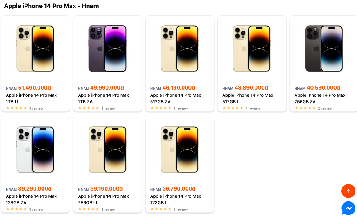 Theo ghi nhận một số cửa hàng tại TP.HCM, giá bán các mẫu iPhone 14 Pro Max từ thị trường Mỹ có giá khởi điểm 36,790 triệu đồng cho tùy chọn 128GB với các phiên bản màu đen, bạc. Các bản màu vàng và tím cao hơn khoảng trên dưới 500.000 đồng.
