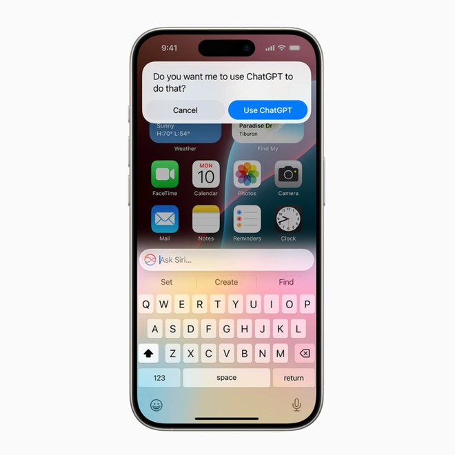 Siri sẽ quyết định liệu yêu cầu của người dùng có thể thực hiện trên thiết bị, trên máy chủ Apple hoặc ChatGPT. Apple cũng dành một số lời khen ngợi cho công cụ từ OpenAI nhưng điều quan trọng là nếu dùng đến ChatGPT, hệ thống sẽ hỏi ý kiến của bạn xem có muốn tiếp tục hay không và sau đó mới kết nối để đưa ra câu trả lời.