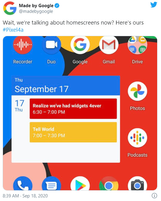 21/09/2020 20:35Google lại 'cà khịa' Apple về tính năng widget trên iOS 14, khoe đã có widget từ cách đây cả thập kỷ