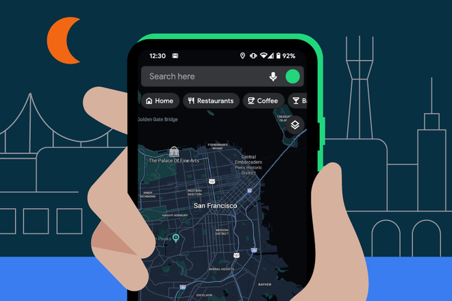 Chế độ Dark Mode mới của Google Maps khác với tùy chọn night mode trước đây, có thể được kích hoạt trong menu Settings, dưới mục Theme. Chế độ Dark Mode sẽ thực sự biến mọi thứ thành nền đen, không chỉ riêng phần bản đồ.