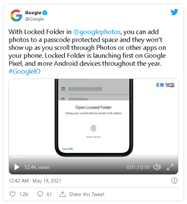Google cho biết rằng tính năng Locked Folder sẽ được ra mắt đầu tiên trên những chiếc smartphone Pixel, sau đó sẽ được cập nhật cho những smartphone Android khác trong vòng một năm.