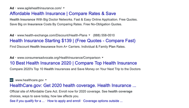 Vài tháng sau đó, từ tháng 1 năm 2020, Google thiết kế lại cách hiển thị quảng cáo trên trang kết quả của máy tính, thay thế chữ "ad" bằng màu xanh lá tươi sáng và màu sắc đặc trưng của đường link quảng cáo trước đây bằng một ghi chú nhỏ màu đen có chữ "ad". Nói cách khác, thiết kế này khiến cho các đường link "quảng cáo của Google giống hệt như đường link kết quả tìm kiếm."