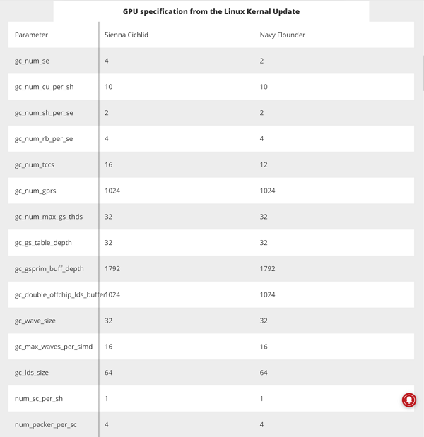 Cụ thể thì các thông số đó thuộc về GPU “Sienna Cichlid” (Navi 21, hoặc Big Navi) và “Navy Flounder” (Navi 22 hoặc 23). Điều thú vị nhất ở đây là thông số này có vẻ như xác nhận tin rò rỉ Big Navi có đến 80 compute unit (CU) là đúng sự thật., còn “Navy Flounder” thì có 40 CU.