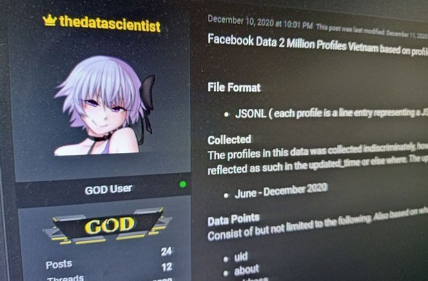 Ít ngày qua, truyền thông liên tục đưa tin về việc dữ liệu của hàng triệu người dùng Facebook Việt đã bị lộ trên một diễn đàn chuyên mua bán dữ liệu của giới hacker. Cụ thể, thông tin được một người dùng có tên ltianyi chia sẻ từ khoảng giữa tháng 11, nhưng đến giờ mới được truyền thông trong nước chú ý.