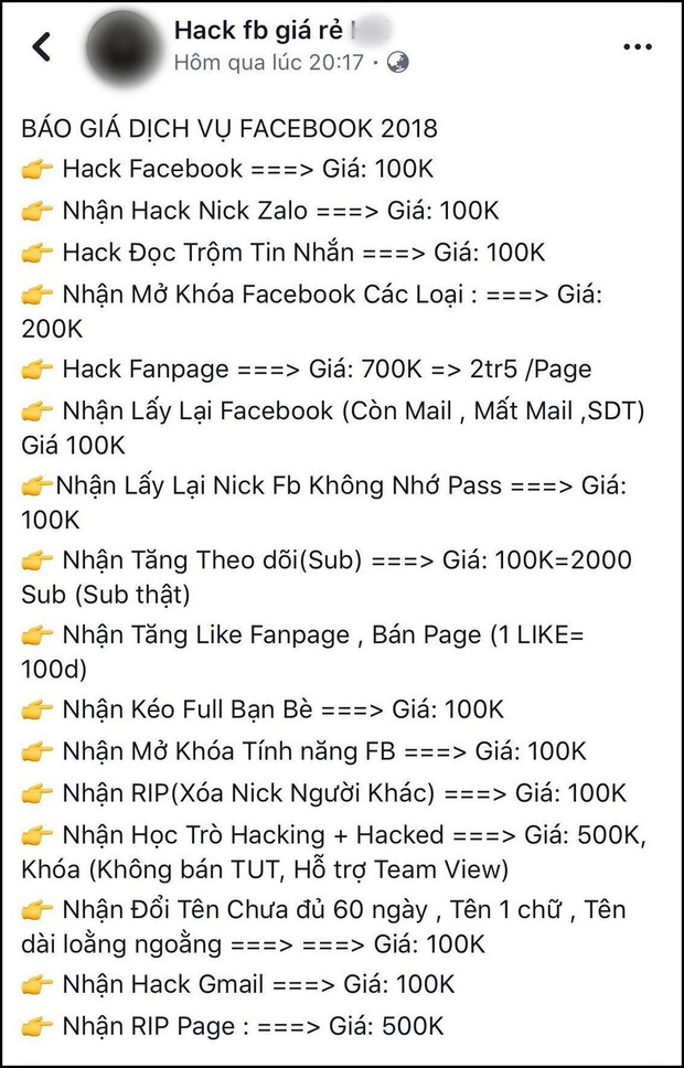Đã có rất nhiều tài khoản Facebook và Instagram bị hacker tấn công, cướp quyền sử dụng nhằm mục đích chủ yếu tống tiền, lừa đảo hoặc thậm chí là rao "bán xác" cho giới chợ đen.