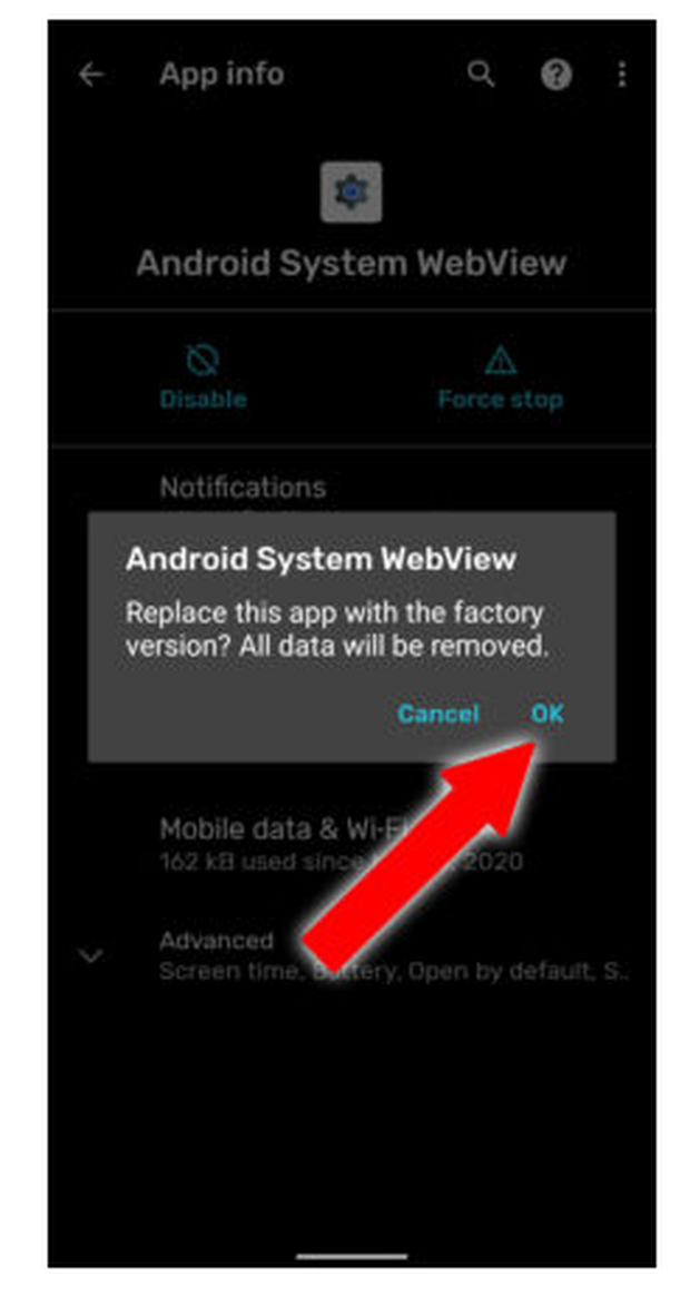 Để khắc phục tạm thời sự cố này, các bạn có thể vào menu Settings của hệ điều hành Android. Tìm đến mục Apps & Notifications, tìm đến Android System Webview (nếu không thấy ứng dụng này, hãy bấm vào dấu 3 chấm ở phía trên bên phải và chọn show system apps).
