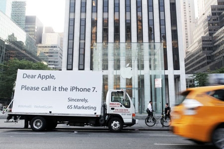 Tuy nhiên, một công ty quảng cáo nhỏ đang gây áp lực lên Apple, yêu cầu họ loại bỏ tên gọi iPhone 6S bằng iPhone 7. Công ty này thậm chí cho trưng một tấm biển quảng cáo với nội dung “Hãy gọi nó là iPhone 7” ngay tại Quảng trường Thời đại (New York, Mỹ).