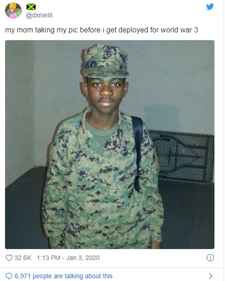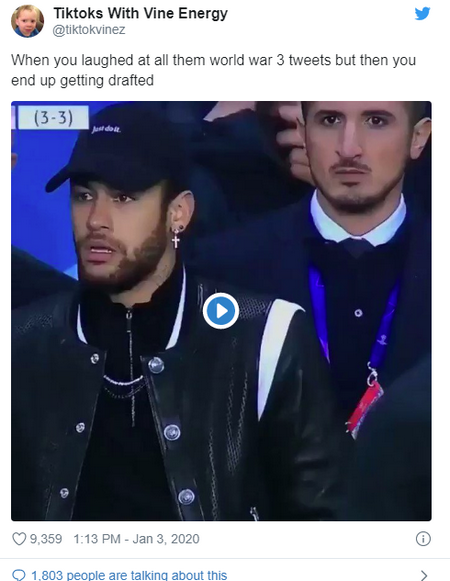 Theo News18, các cụm từ "World War 3", "World War III" hay hashtag #WW3, #WWIII, #WorldWar3 xuất hiện ngày một dày đặc trên các phương tiện truyền thông xã hội, chủ yếu là Twitter. Họ tweet bằng những "meme", hình ảnh cũng như video ngắn, thể hiện sự lo sợ chiến tranh giữa Mỹ và Iran sẽ diễn ra, mở đầu cho Chiến tranh thế giới thứ ba.