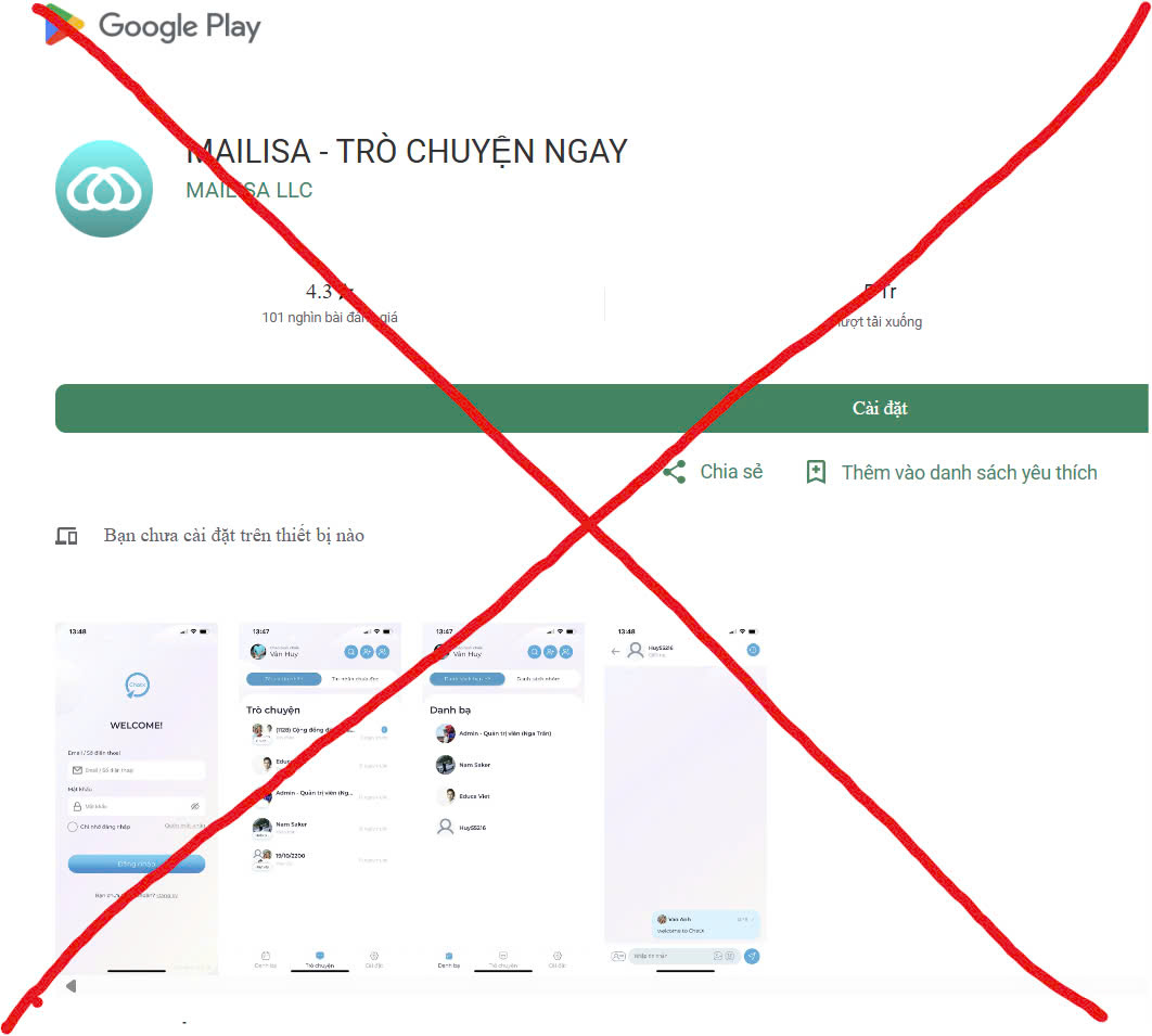 Trong khi đó, anh L. cho biết do có người quen bị lừa nên anh đã tìm hiểu, mới biết trên trang web sẽ có nút tải ứng dụng giả mạo App store và CH play để dụ những người không rành công nghệ tin tưởng nhưng thực chất app này không tồn tại trên App store thật hay CH play thật.