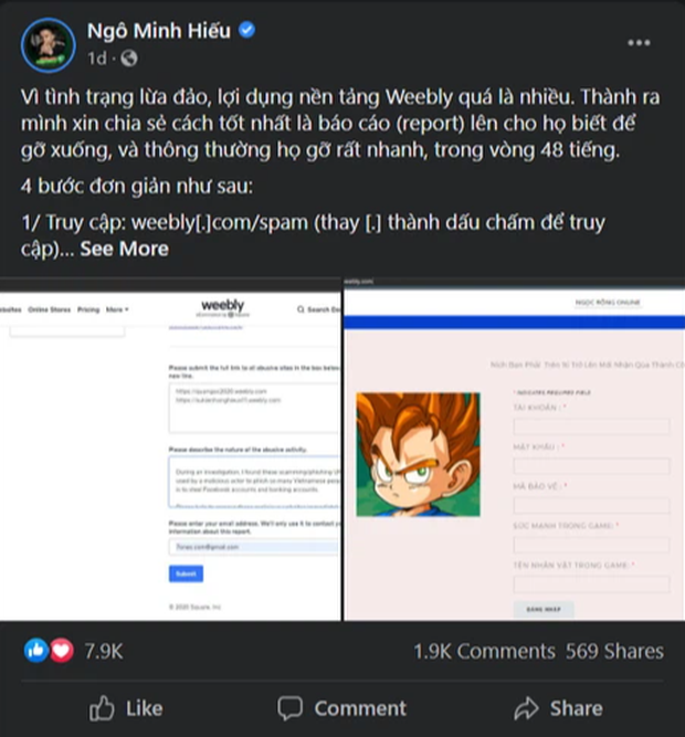 Theo chia sẻ từ Hieupc, nhận thấy tình trạng lừa đảo, lợi dụng nền tảng Weebly đang diễn ra hết sức phức tạp và phổ biến, do đó anh chàng đã tự mình viết một bài hướng dẫn hết sức có tâm để gửi đến những người dùng, đặc biệt là các game thủ, đối tượng chính của các vụ lừa đảo gần đây (bạn có thể tham khảo các bước thông qua link này).