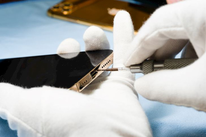 Các kỹ thuật viên chuyên nghiệp sẽ dùng dụng cụ chuyên dụng để tách màn hình chiếc iPhone 13 Pro Max này ra