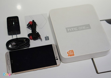 One M9 Plus có ngoại hình khá giống bản M9 tiêu chuẩn. Hộp đựng máy không khác biệt. Máy đi kèm sạc, cáp microUSB, tai nghe chống rối và que chọc SIM. |