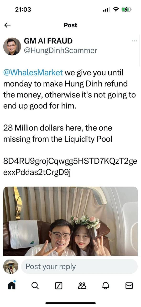 Ngày 14/9, tài khoản X (Twitter cũ) GM AI Fraud đăng loạt bài tố doanh nhân người Việt, tên Hùng Đinh có hành vi lừa đảo, chiếm đoạt 28 triệu USD tiền số của nhà đầu tư thông qua dự án GM.AI.