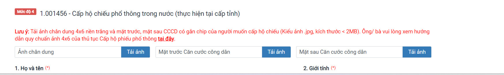 Bước 3: Thực hiện điền hồ sơ online, tải ảnh chân dung 4x6, mặt trước và sau thẻ CCCD có gắn chíp theo hướng dẫn