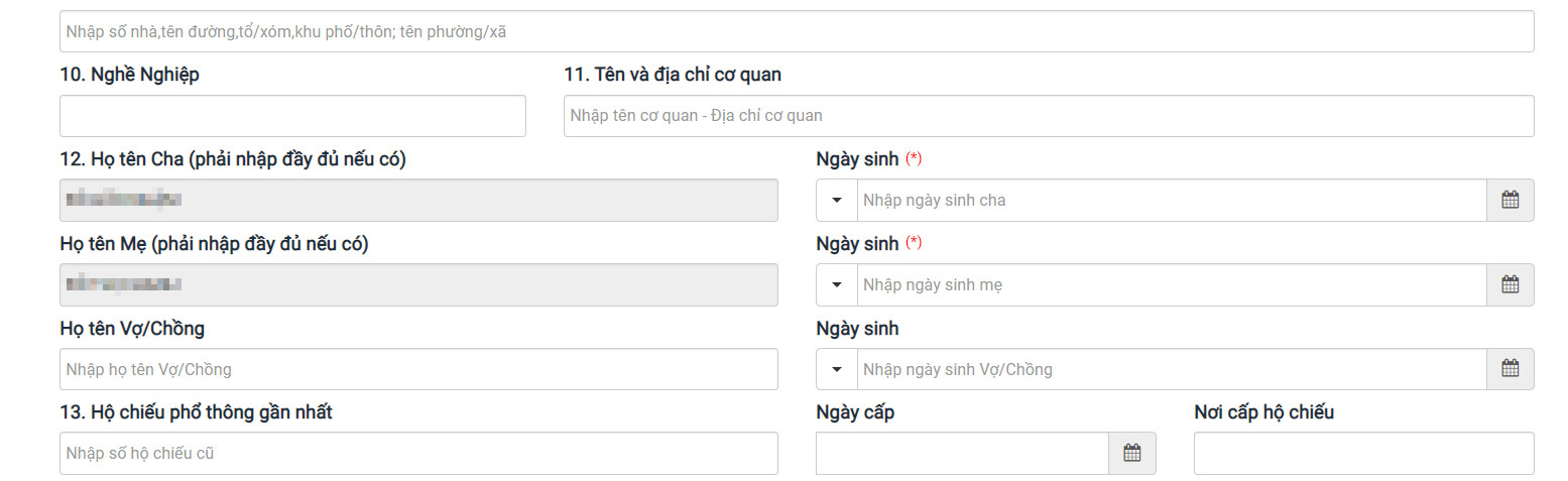 Những thông tin ở mục 1 tới 8 (tên tuổi, ngày sinh, địa chỉ thường trú,...) của bạn sẽ được tự động điền từ CSDL quốc gia về dân cư, bạn chỉ cần kiểm tra xem có chính xác hay không.