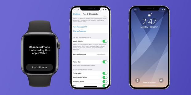 Nếu đang sử dụng Apple Watch, Face ID trên iPhone sẽ hoạt động giống như khi người dùng không đeo khẩu trang. Do đó, họ có thể nhìn vào điện thoại để mở khóa nhanh chóng, không cần kéo khẩu trang xuống hay phải nhập mã PIN.