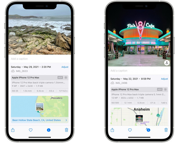 Trước đây, nếu muốn xem được thông tin về hình ảnh (EXIF Data) trên iPhone, bạn buộc phải sử dụng các ứng dụng của bên thứ 3 hoặc phải tải ảnh lên các ứng dụng bên thứ 3 như Google Photos, Flickr… Nhưng với iOS 15, bạn đã có thể xem trực tiếp thông số này trên ứng dụng Photos (Ảnh).