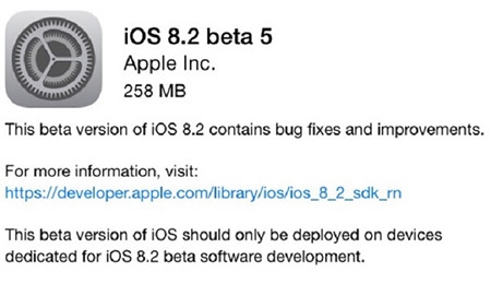 Theo thông tin từ Apple, hãng đã phát hành bản iOS 8.2 beta 5 dành cho các nhà phát triển.