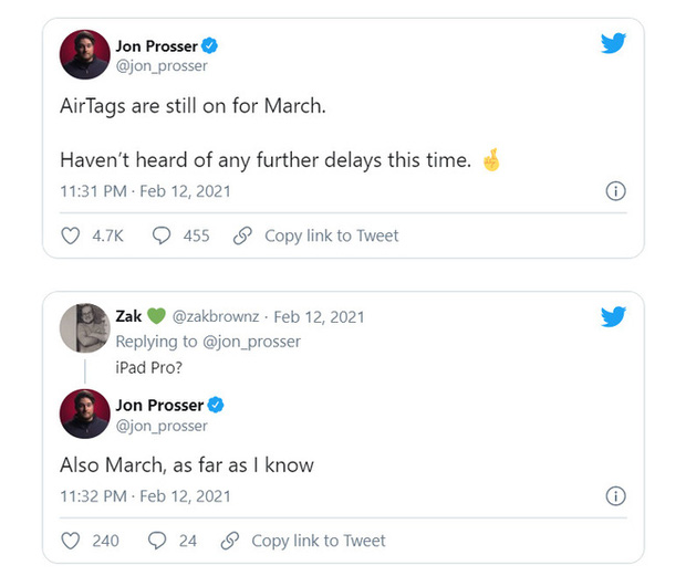 18/02/2021 21:30iPad Pro mới, AirTags và AirPods sẽ trình làng vào tháng 3 tới?