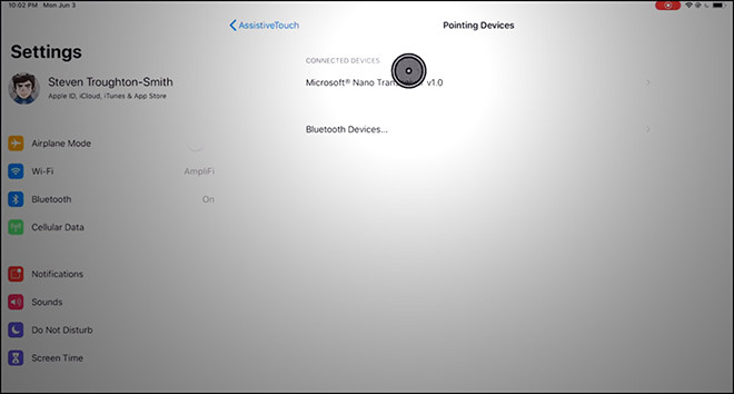 iPad của người dùng sẽ không hiển thị một con trỏ chuột truyền thống mà thay vào đó nó có vòng tròn Assistive Touch thông thường. Người dùng có thể di chuyển nó như bình thường và nhấp vào biểu tượng mình muốn mở.