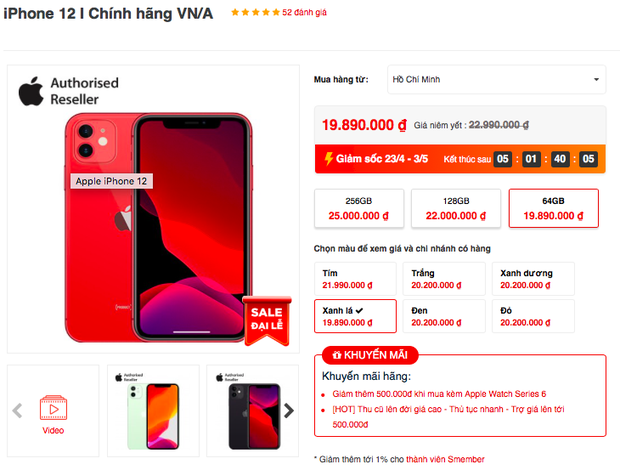 iPhone 12 màu đỏ: 20.200.000 đồng
