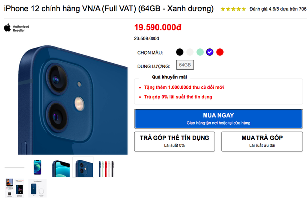 iPhone 12 màu xanh: 19.590.000 đồng