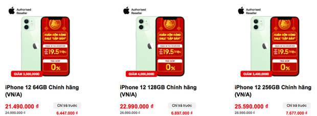 Trái ngược với sự giảm giá đồng loạt hay giảm giá vài màu trong mẫu iPhone 12 nói trên, tại cửa hàng Thế Giới Di Động mẫu iPhone 12 vẫn đang được bán với giá 21.990.000 đồng.