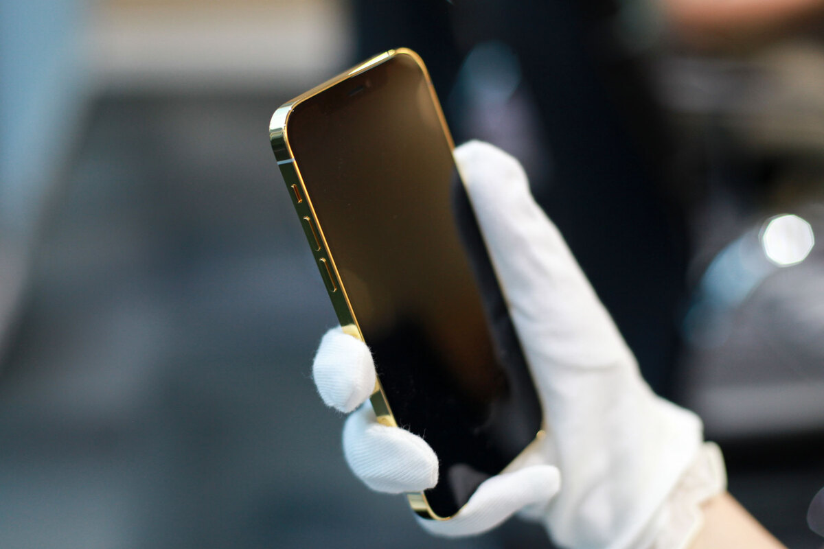 Một xưởng chế tác ở Việt Nam vừa hoàn thành mẫu iPhone 12 Pro mạ vàng toàn thân. Tất cả thao tác được làm thủ công, dùng vàng 24K. Thợ mất khoảng 80 giờ để hoàn thành.