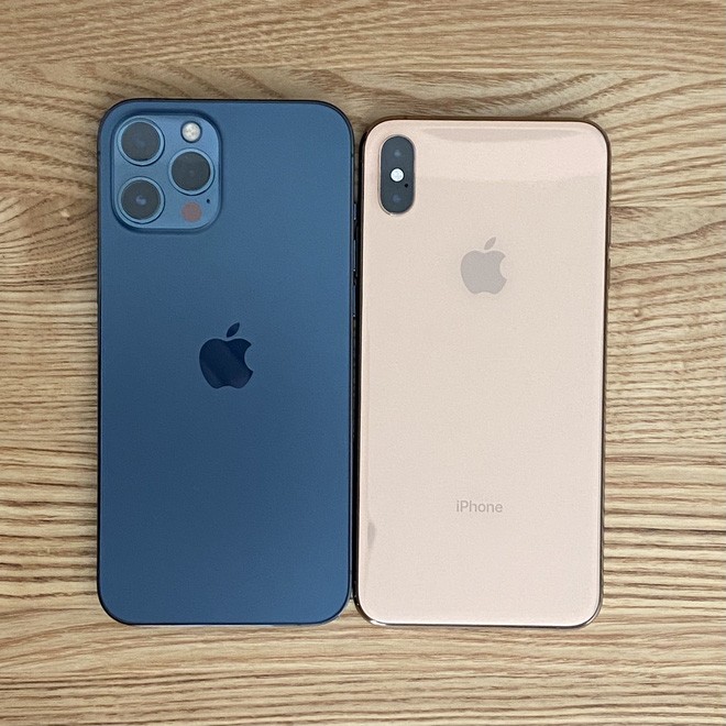 Một người dùng khác tại Nhật Bản cũng chia sẻ hình ảnh chiếc iPhone 12 Pro Max màu Pacific Blue mà anh này mới "tậu". Quan trọng hơn, trong số đó là một hình ảnh so sánh kích thước với chiếc iPhone Xs Max mà anh này thay thế, từ đó cho phép chúng ta có một cái nhìn cận cảnh về kích thước của chiếc iPhone 12 Pro Max so với những model đời cũ.