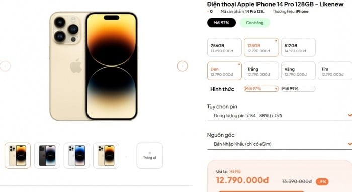 Tại thời điểm nghỉ lễ năm mới, giá iPhone 14 Pro cũ (99%) chỉ dao động từ 14 - 16 triệu VNĐ, trong khi máy mới (nếu còn hàng) khoảng 18 - 20 triệu VNĐ. Đây là một món hời nếu như mua một chiếc iPhone nào khác ở mức giá tương đương hay thậm chí smartphone Android ở mức giá này khó lòng cạnh tranh.