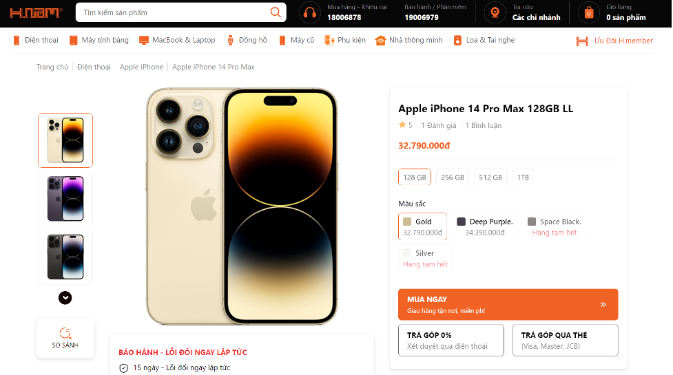 Khi tham khảo một số cửa hàng, iPhone 14 Pro Max xách tay thị trường Mỹ có giá khởi điểm 32,79 triệu đồng cho phiên bản 128 GB, giảm khoảng hơn 1 triệu đồng so với tuần trước.