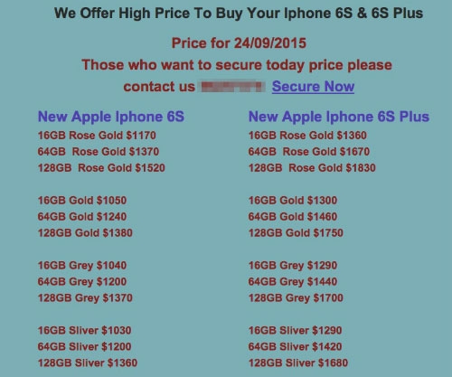 Giá chào mua của iPhone 6s và 6s Plus của giới buôn iPhone Singapore. |
