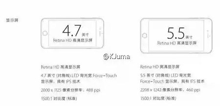 Rò rỉ thông số màn hình của iPhone 6S và 6S Plus. Ảnh: Weibo. |