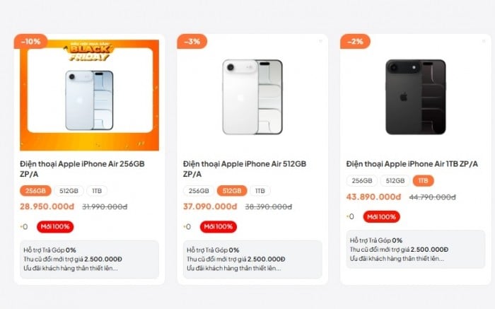 - iPhone Air 1TB: 43.89 triệu đồng.
