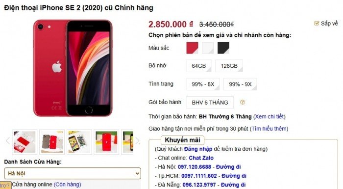 Tại thời điểm giữa tháng 3/2026, iPhone SE 2020 có giá chưa đầy 3 triệu đồng cho bản tiêu chuẩn 64GB. Trong khi đó dung lượng cao hơn cũng không đắt hơn nhiều khi cũng chỉ hơn 3 triệu. Ở mức giá này nếu mua smartphone khác sẽ khó lòng có được chip mạnh và camera chất lượng hơn iPhone SE 2020.